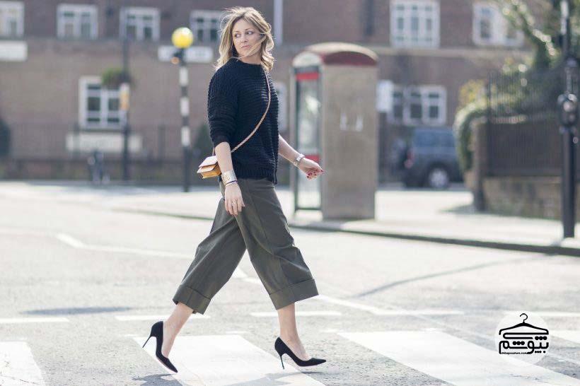 شلوارهای گشاد از این رو که پهنای اندام شما را بیشتر نشان می دهد، از قدتان می کاهد. اما برای رفع این مشکل چه باید کرد؟ ساده است، کافی است کمی قد شلوارتان را بلندتر بگیرید اما از آنجا که دوست ندارید پاچه های شلوارتان روی زمین کشیده شود، باید به همراه آن یک جفت کفش پاشنه بلند بپوشید. اگر شلوار شما کمی از پاشنه کفشتان را بپوشاند، شما قد بلندتر به نظر خواهید رسید.