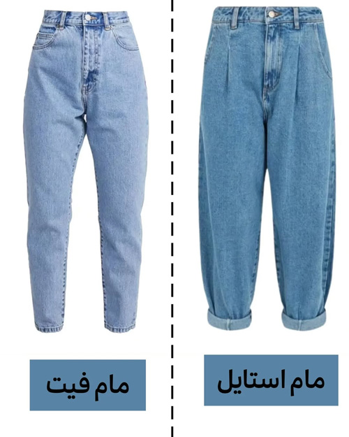 شلوارهای مام استایل با فاق بلند و فرم نسبتاً گشاد در ناحیه ران شناخته میشوند و در دهه ۸۰ و ۹۰ میلادی محبوب بودند. مامفیت، بهنوعی نسخهی کمی جذبتر ماماستایل است که فرم پاها کمتر گشاد و تا حدی به بدن نزدیکتر است. این مدلها برای طرفداران استایلهای رِترو و راحت مناسب هستند.