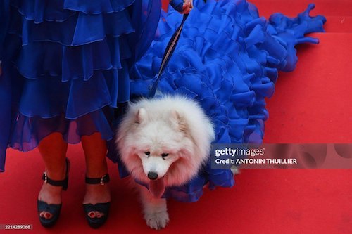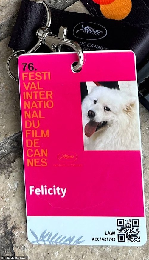 در مراسم افتتاحیه جشنواره فیلم کن ۲۰۲۵، حضور یک سگ نجاتیافته به نام «فلیسیتی» (Felicity) در لباس شب آبیرنگ، توجه همگان را به خود جلب کرد. این سگ از نژاد ساموید، که پیشتر از تجارت گوشت سگ در چین نجات یافته بود، به همراه جولیا د کادنت (Julia de Cadenet)، بنیانگذار خیریه «No To Dog Meat»، بر روی فرش قرمز ظاهر شد.