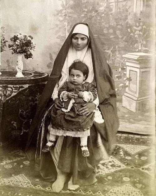 در یکی از عکسهای آتلیهای ارزشمند بهجایمانده از دوران قاجار، تصویری از یک مادر و دختر کوچک دیده میشود که نه تنها بخشی از زندگی روزمره زنان آن دوران را به نمایش میگذارد، بلکه ترکیبی از پوشش سنتی و نگاه آگاهانه به دوربین را نیز منعکس میکند.