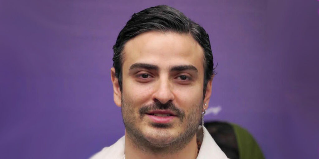 محمدامین شعرباف، بازیگر جوان و مستعد ایرانی است که در فیلم و سریالهای بسیاری ایفای نقش کرده و بیشتر بهواسطهی بازی در سریال «گردنزنی» به شهرت رسید. او در جشن تولد ۳۵ سالگیاش با تیشرت مشکی ساده و گوشوارهی آویز ظاهر شد.