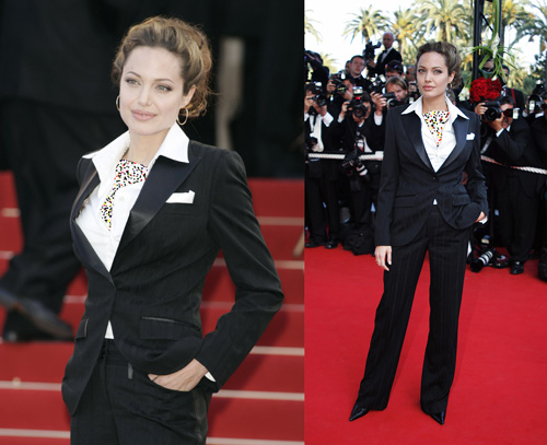 در سال ۲۰۰۴، آنجلینا جولی با ظاهری شامل شومیز سفید و کت و شلوار مشکیرنگ روی فرش قرمز جشنواره کن حاضر شد و با سادگی و زیبایی خود جلب توجه کرد. سبک ماسکولین آنجلینا در این مراسم خلاقیت و جسارت او برای حضور روی فرش قرمز را به رخ کشید.