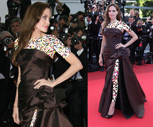 در جشنواره کن ۲۰۱۱، جولی با پیراهنی شکلاتی از آتلیه «ورساچه» روی فرش قرمز حضور یافت. این لباس بدون بند با چاک بلند و جزئیات چیندار در قسمت کمر ظاهری شیک و جذاب برای او فراهم کرد. او این لباس ساتن را با کفشهای «فِرِگامو» و جواهرات ساده تکمیل کرد.