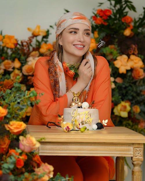تولد او با فضایی گرم و دوستانه همراه بود و واکنشهای مثبت بسیاری از سوی طرفدارانش دریافت کرد. در این عکسها، بهنوش طباطبایی با شومیز و شلواری نارنجیرنگ دیده میشود که با روسری طرحداری مزین به گلهای نارنجی هماهنگ شده است. این ترکیب رنگی روشن و شاد، انرژی خاصی به استایل او داده و باعث شده تا حال و هوای تصاویرش با حس تازگی و نشاط همراه باشد. انتخاب این استایل خوشرنگ و چشمنواز، بار دیگر نشان داد که او به خوبی در انتخاب لباسهای مناسب فصل و هماهنگ با مناسبتهای شخصی مهارت دارد.