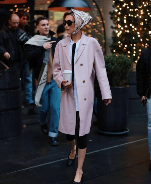 بلا در این عکس‌ها ترنچ‌کت کلاسیک از برند پرادا را به تن دارد؛ آیتمی ماندگار که همیشه نماد شیک‌پوشی شهری بوده است. در کنار آن، مینی اسکارف خال‌دار که به‌صورت پوشش سر استفاده شده، حال‌وهوایی نوستالژیک و کاملاً حساب‌شده به استایل او می‌دهد.