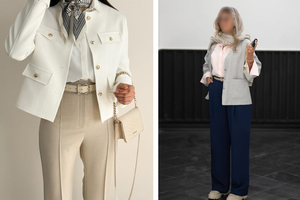 • کت‌های کوتاه روی بلوز مینیمال یا شومیز سفید: ترکیبی که میان سادگی و ظرافت توازن برقرار می‌سازد.
