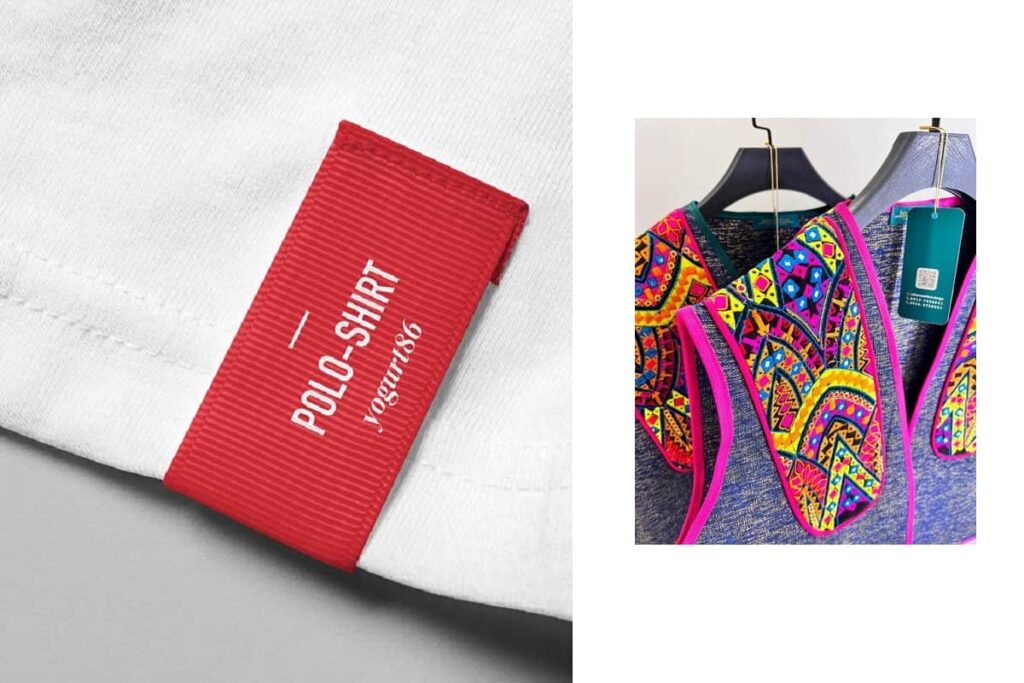 یکی دیگر از انواع خرج کارهای لباس که همه ما با آن آشنایی داریم مارک ها و تگ های شرکت های تجاری و برندهای تولیدکننده لباس هستند. این مارک و لوگوها معمولا بر پشت یقه لباس دوخته می شوند. این نوع خرج کار لباس به راحتی می تواند هویت برند تولیدکننده را برای خریداران نمایان کند. اغلب افراد حین خرید لباس های مد و جدید به مارک آن توجه می کنند. به همین دلیل است که استفاده از لوگوی برند تولیدکننده در خرجکار لباس ها اهمیت دارد.