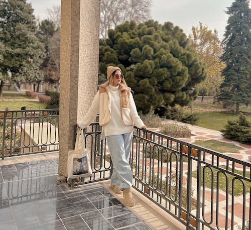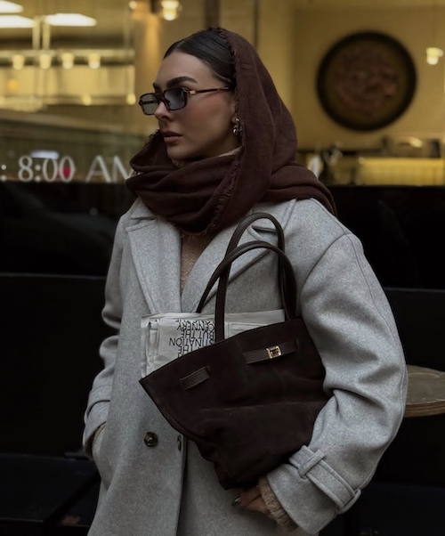 کیفهای بزرگ میتوانند از جنس چرم، برزنت یا پارچههای سبکتر طراحی شوند و با رنگهای خنثی مانند بژ، مشکی و کرم یا رنگهای جسورانه مانند قرمز، آبی و سبز در بازار موجود هستند. بسیاری از استایلیستها توصیه میکنند که این کیفها را با کتهای اورسایز، شلوارهای پارچهای گشاد و حتی لباسهای کژوال مانند مانتوهای بلند نخی و کفشهای تخت ترکیب کنید تا ظاهری هماهنگ و مدرن داشته باشید. در استایل بسیاری از بلاگرهای ایرانی نیز مدلهای مختلف کیفهای بزرگ به چشم میخورد. بلاگرهایی که به استایلهای مینیمال و مونوکروم علاقه دارند، اغلب این کیفها را با آیتمهایی مانند شلوارهای گشاد و کتهای ساده ست میکنند، در حالی که بلاگرهای علاقهمند به استایلهای جسورانه، کیفهای بزرگ رنگی و طرحدار را با لباسهای غیررسمی و خیابانی ترکیب کردهاند. این کیفها نه تنها برای استایل روزمره گزینهای ایدهآل هستند، بلکه در استایلهای نیمهرسمی نیز بهراحتی قابل استفادهاند و فضایی کافی برای حمل تمام وسایل ضروری روزانه فراهم میکنند. بدون شک، کیفهای بزرگ یکی از آیتمهای برجسته و محبوب بهار امسال خواهند بود. در ادامه نگاهی داشتهایم به چند مدل از کیفهای بزرگ به انتخاب بلاگرهای ایرانی. با چیبپوشم همراه باشید.