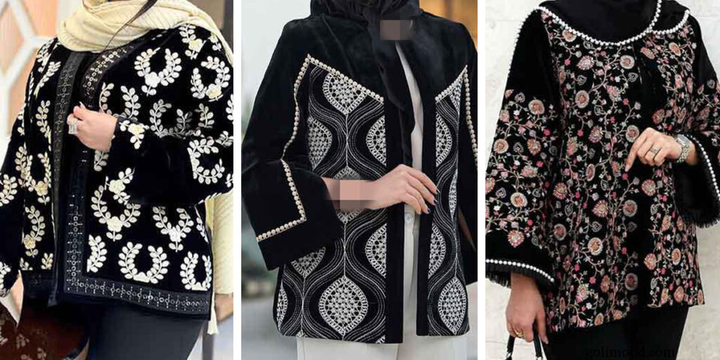 مانتو سوزن دوزی مشکی ۲۰۲۵؛ در طرح های جدید
