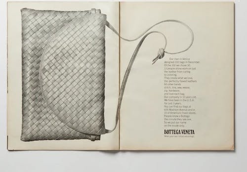 تکنیک «اینتروچیاتو»، که نام آن بهمعنای «بافت درهم» است، با استفاده از نوارهای چرمی با دقت و ظرافت بافته میشود تا ساختاری نرم، منعطف و در عین حال مقاوم بهوجود آید. «بوتگا ونتا» در دهه ۷۰ میلادی این تکنیک را برای تولید کیفهایی با کیفیت و ظاهری متمایز معرفی کرد و این کیفها بهسرعت محبوبیت یافتند. این طراحی نهتنها ظاهری شیک و ظریف دارد، بلکه بدون لوگوهای آشکار و پر زرق و برق، فلسفه برند «وقار بینام» (stealth wealth) را نمایان میکند.
