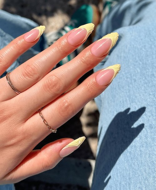 در دنیای طراحی ناخن، زرد کرهای بهعنوان رنگی شیک و چشمنواز در انواع طرحها مورد استفاده قرار میگیرد. از طراحیهای مینیمال با لاک سادهی براق گرفته تا مدلهای فرانسوی با نوک زرد کرهای، این رنگ جلوهای خاص و لطیف به دستان شما میبخشد. یکی از ترندهای محبوب، ترکیب زرد کرهای با طراحی گلهای ریز سفید یا مرواریدهای کوچک است که جلوهای زنانه و خاص ایجاد میکند. همچنین استفاده از این رنگ در طرحهای مات یا نیمهشفاف، طراحیهای هندسی یا مرمری هم رایج شده و جلوهای متفاوت اما همچنان لطیف و ترند به ناخنها میدهد. زرد کرهای انتخابی عالی برای کسانیست که دنبال ظاهری ملایم، متفاوت و درعینحال امروزی هستند.