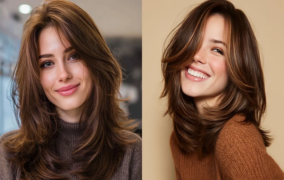 - صورت گرد: چتری پروانهای بلند یا با فرق کج، به صورتهای گرد کمک میکند که کشیدهتر و متناسب دیده شوند.