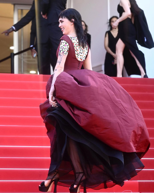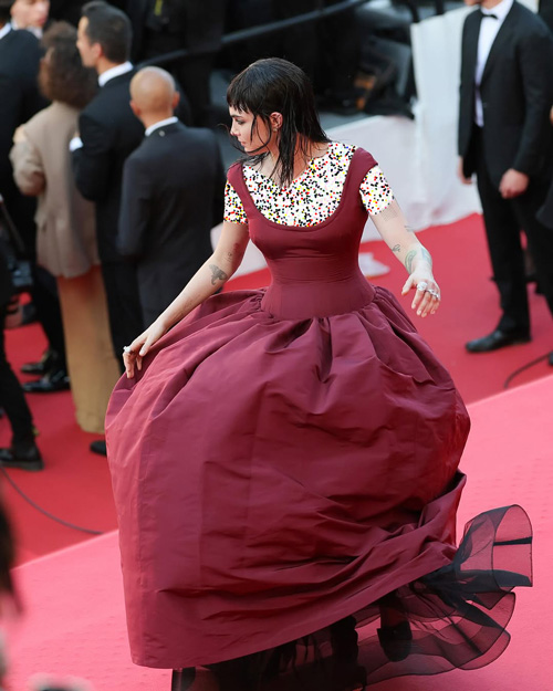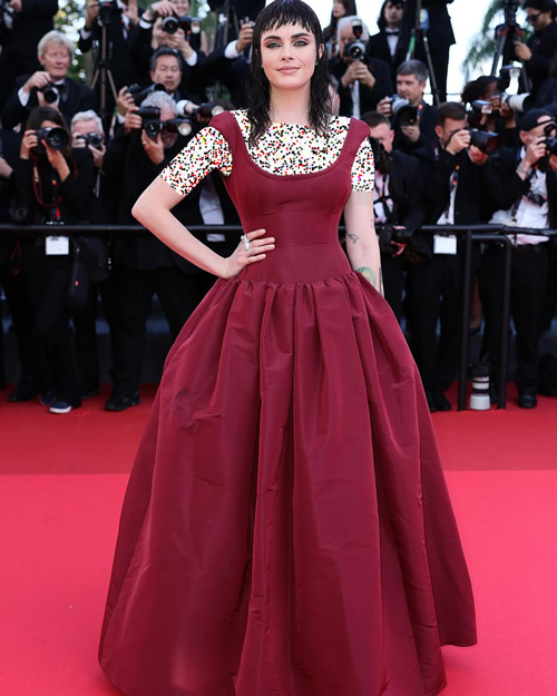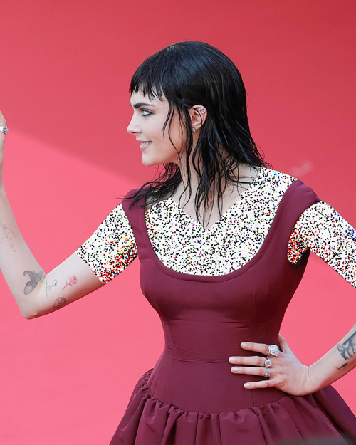او با مدل موی جدیدی که شامل رنگ مشکی براق و چتریهای بسیار کوتاه تا وسط پیشانی بود، قدم به مراسم گذاشت. موهای او به حالتی خیس و براق حالت داده شده بودند که جلوهای مدرن و تئاتری به چهرهاش میبخشید. کارا دلواین برای این مراسم پیراهنی زرشکیرنگ و آستینحلقهای بر تن داشت که با دامنی پفدار و حجیم که زیر آن چند لایه تور مشکی کار شده بود، ترکیبی چشمگیر و تماشایی را خلق میکرد. استایل او تلفیقی از اغواگری کلاسیک و جلوههای تند و امروزی بود؛ انتخابی که بهخوبی با شخصیت جسور و غیرقابل پیشبینی او همخوانی داشت. این ظاهر جدید، گواهی بر روحیه بیپروا و تمایل همیشگی دلواین به تجربههای تازه در دنیای مد و زیبایی است.