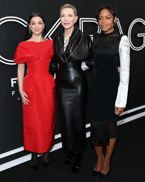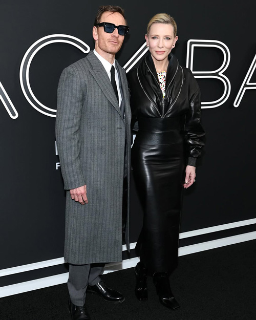 او با استایلی شیک شامل کت چرم مشکی و دامن مدادی بلند از همان جنس و رنگ ظاهر شد که توجه بسیاری را به خود جلب کرد. او قسمت پایین کتش که طراحی جذابی در قسمت یقه داشت را در دامنش قرار داده بود. نکتهی حائز اهمیت در این استایل، مدل موی پیکسی کیت بود که ظاهری جوان و شاداب به او بخشیده بود. فیلم «کیف سیاه» یک درام جاسوسی به کارگردانی استیون سودربرگ است که در آن کیت بلانشت و مایکل فاسبندر به ایفای نقش پرداختهاند. این فیلم قرار است در تاریخ ۱۴ مارس ۲۰۲۵ (۲۴ اسفند ۱۴۰۳) اکران شود. حضور کیت بلانشیت با این استایل در مراسم اکران، بار دیگر سلیقه بینظیر او در انتخاب لباس و ظاهر را نشان داد و مورد تحسین علاقهمندان به مد و سینما قرار گرفت.