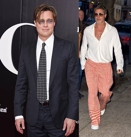 برد پیت که در دهههای گذشته با استایلهای کلاسیک و جذابش شناخته میشد، در سالهای اخیر به سمت پوششهای غیرمتعارف و گاهی عجیب گرایش پیدا کرده است. شلوارهای طرحدار و خاص او انتخابی جسورانه و خاص است اما تیپ او دیگر مانند گذشته جذاب به نظر نمیرسد.
