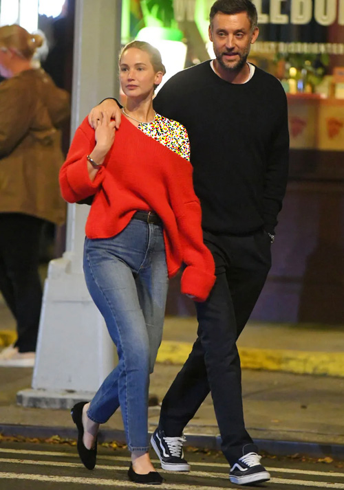 جنیفر لارنس در خیابانهای نیویورک با استایلی ساده و شیک دیده شد: یک پلیور یقهباز قرمز، شلوار جین آبی و کفشهای بالهی مشکی از برند «H&M». این ترکیب نشاندهندهی تعادل بین راحتی و شیکپوشی است.