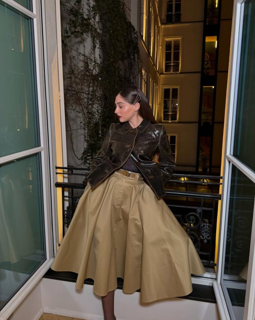 شب گذشته، جمره بایسل در ایونتی به میزبانی برند «ایو روشه» در پاریس حضور یافت. او برای همکاری با این برند به پاریس سفر کرده است. استایل جمره در این مراسم شامل بلوز تور مشکی، دامن کلوش کرمیرنگ و کت چرم قهوهای بود که ظاهری شیک و جذاب ایجاد کرده بود.