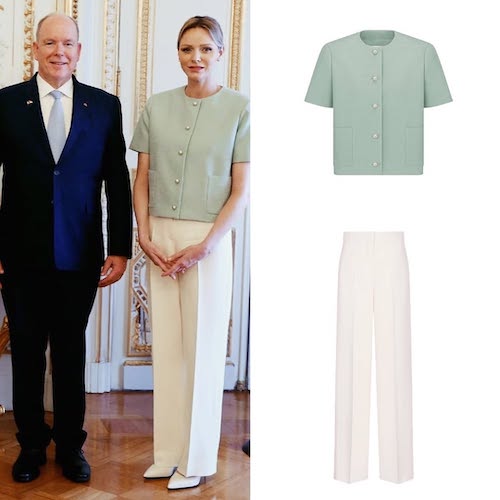 شاهزاده خانم شارلین با کت آستینکوتاه آبی روشن دکمهدار و شلوار سفید گشاد از برند «دیور»، ظاهری ساده داشت. بریژیت مکرون نیز کتوشلوار کرم بژ پوشیده بود. جزئیاتی مانند دکمههای صدفی و کفشهای پاشنهدار همرنگ، بر هماهنگی رنگی لباسها تأکید میکرد. جیمز و گابریلا نیز در لحظاتی به مادرشان پیوستند و حال و هوایی صمیمیتر به این دیدار رسمی دادند.