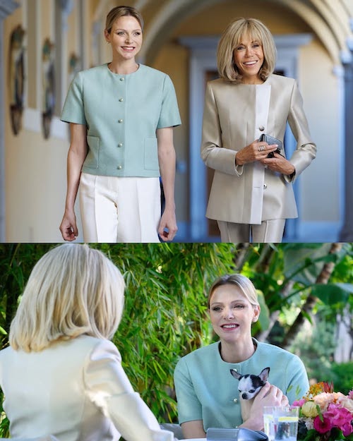 شارلین در زمینهی آموزش از طریق ورزش و پیشگیری از غرقشدگی فعال است و بریژیت مکرون نیز در حوزههای آموزش، فراگیری اجتماعی و مقابله با زورگویی مشارکت دارد. در این دیدار، هر دو بانو لباسهایی ساده، روشن و هماهنگ با فضای رسمی و تابستانی پوشیده بودند. رنگهای خنثی و برشهای راسته، فضای مد در دیدار فرانسه و موناکو را هماهنگ کرده بودند.