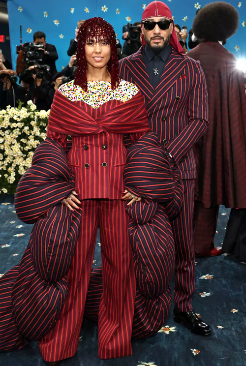 آلیشیا کیز با کتوشلواری قرمز و خطدار از برند «مونکلر» و سوییز بیتز با لباسهایی هماهنگ با همسرش، حضوری درخشان روی فرش قرمز داشتند. استایل آنها ترکیبی از قدرت و ظرافت را به نمایش گذاشت.