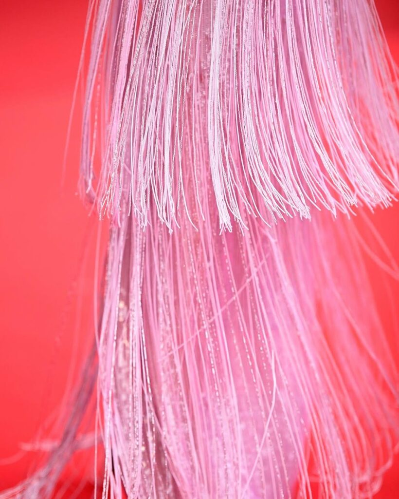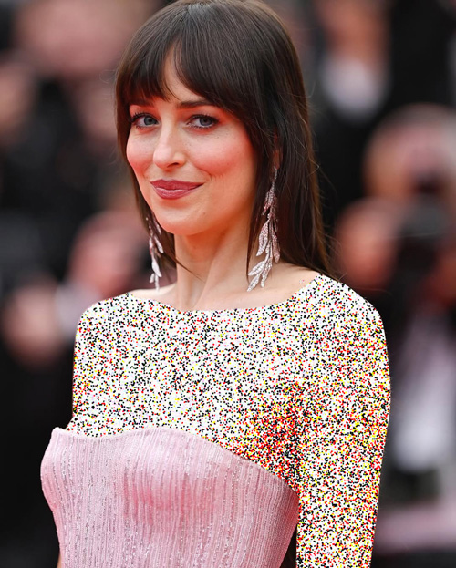 داکوتا جانسون، هنرپیشه ۳۵ ساله و مشهور سینمای هالیوود، شب گذشته روی فرش قرمز جشنواره کن ۲۰۲۵ حاضر شد و با پیراهن دکلته و صورتیرنگ از برند «گوچی» که با ریشریشهای بلندی تزئین شده و از ترندهای سال به حساب میآمد، پیش از اکران فیلم «از بالاترین به پایینترین» (Highest 2 Lowest) جلوی دوربینها ژست گرفت.