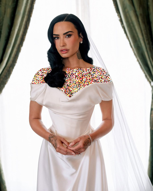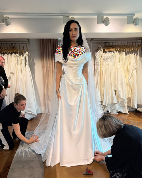 دمی لواتو که پیشتر بارها درباره عشق و رابطهاش با جوتز صحبت کرده بود، با برگزاری مراسم عروسی، نشان داد که این عشق به مرحلهای عمیقتر و رسمیتر رسیده است. در مراسم اصلی، دمی لواتو با لباسی ساده و شیک از برند معروف «ویوین وستوود» حضور پیدا کرد. این لباس با یقه قایقی و طراحی مینیمال، زیبایی طبیعی و اصالت سبک دمی را بهخوبی به نمایش گذاشت. تور بلندی که استایل او را کامل میکرد، به شکلی ظریف و کلاسیک ظاهر او را برجسته کرد. طراحی این لباس با پارچهای لطیف و برشهای دقیق، نشاندهندهی ترکیبی از ظرافت مدرن و زیبایی کلاسیک بود که مورد تحسین قرار گرفت.