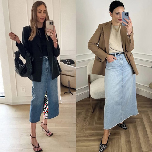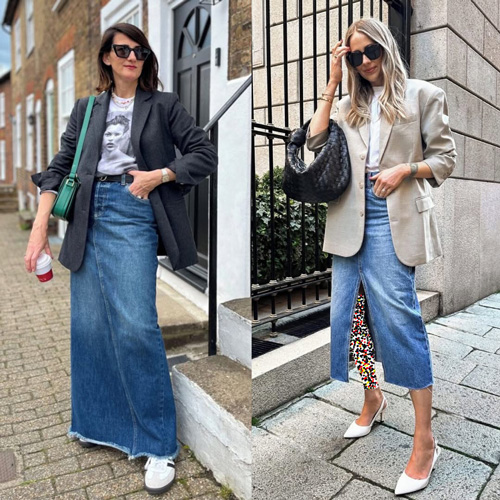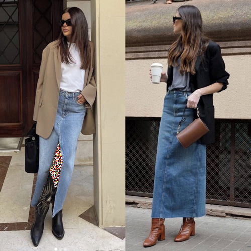 برای استایلی شیک و مدرن، میتوان دامن جین را با بلوزهای نخی یا کتانی سبک، تاپهای فیت یا نیمتنهها ست کرد. در روزهای خنکتر بهاری، ترکیب این دامن با کتهای کوتاه، بلیزرهای اورسایز یا ژاکتهای سبک میتواند جذابیت خاصی به استایل شما بدهد. مدلهای چاکدار یا دکمهدار دامن جین نیز گزینههای ایدهآلی برای بهار هستند و امکان ایجاد استایلهای متنوعتری را فراهم میکنند. برای تکمیل استایل با دامن جین در بهار، انتخاب کفش و اکسسوری مناسب اهمیت زیادی دارد. کفشهای کتانی سفید، صندلهای بندی یا حتی بوتهای بهاری سبک میتوانند این استایل را متعادل و جذاب کنند. برای افرادی که به استایلهای مینیمال علاقه دارند، ترکیب یک دامن جین ساده با کیفهای کوچک دوشی یا کیفهای حصیری، عینک آفتابی ترندی و گوشوارههای حلقهای میتواند ظاهری شیک و امروزی ایجاد کند. از نظر رنگبندی، ترکیب جین آبی با رنگهای پاستلی مثل صورتی ملایم، سبز نعنایی یا آبی آسمانی جلوهای لطیف و بهاری به استایل میبخشد. همچنین، دامنهای جین مشکی یا طوسی نیز انتخابهای شیکی هستند که میتوان آنها را با آیتمهایی در رنگهای خنثی یا پررنگتر ست کرد و استایل متفاوتی برای بهار ۱۴۰۴ خلق کرد.
