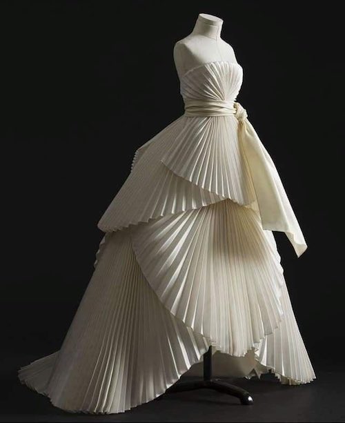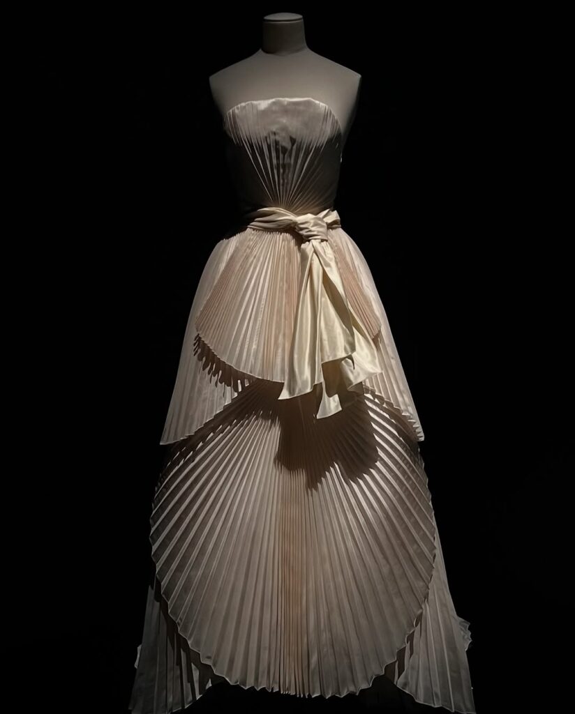 این پیراهن زیبا و چشمنواز، با یقهای منحنی و گلبرگهایی به سبک اوریگامی که همچون نتهای موسیقی بر تن لباس جاری شدند، یکی از شاعرانهترین خلقهای خانه مد «دیور» به شمار میرود و همچنان نیز بسیار مورد توجه است. نسخه اصلی این لباس در نمایشگاه «طراح رؤیاها» به نمایش گذاشته شده و این حس را تداعی میکند که در برابر یک نامهی عاشقانهی مهر و مومشده با ابریشم قرار گرفتهاید. موسیو دیور لباس طراحی میکرد، اما در واقع ادای احترامش را به نمایش میگذلشت؛ با احساسی عمیق، دقتی مثالزدنی و جاودانه.