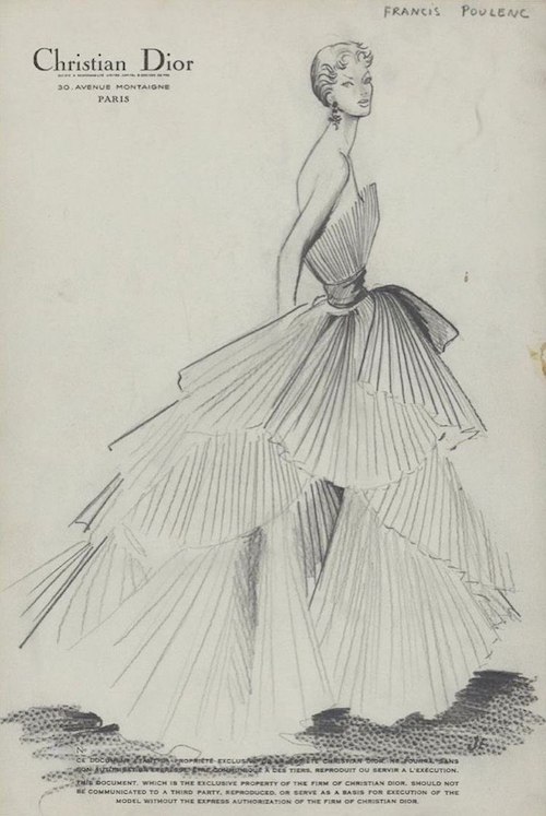 لباس فرانسیس پولنک خاطرهای است که در تار و پود پارچه چین خورده و محبتی است که در قالبی معمارانه تا شده است. این پیراهن شگفتانگیز به رنگ کرم، نخستین بار توسط موسیو کریستین دیور برای کالکشن اوت کوتور بهار ۱۹۵۰ طراحی شد و نام آن از دوست نزدیکش، آهنگساز شهیر، فرانسیس پولنک گرفته شد.