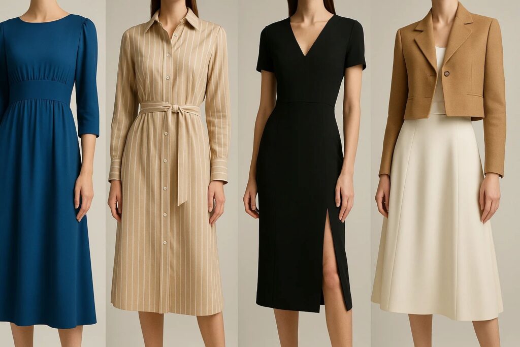 | رپ (Wrap Dress) | موثر از طریق خطوط مورب و یقه V | قابل تنظیم، انعطافپذیر |