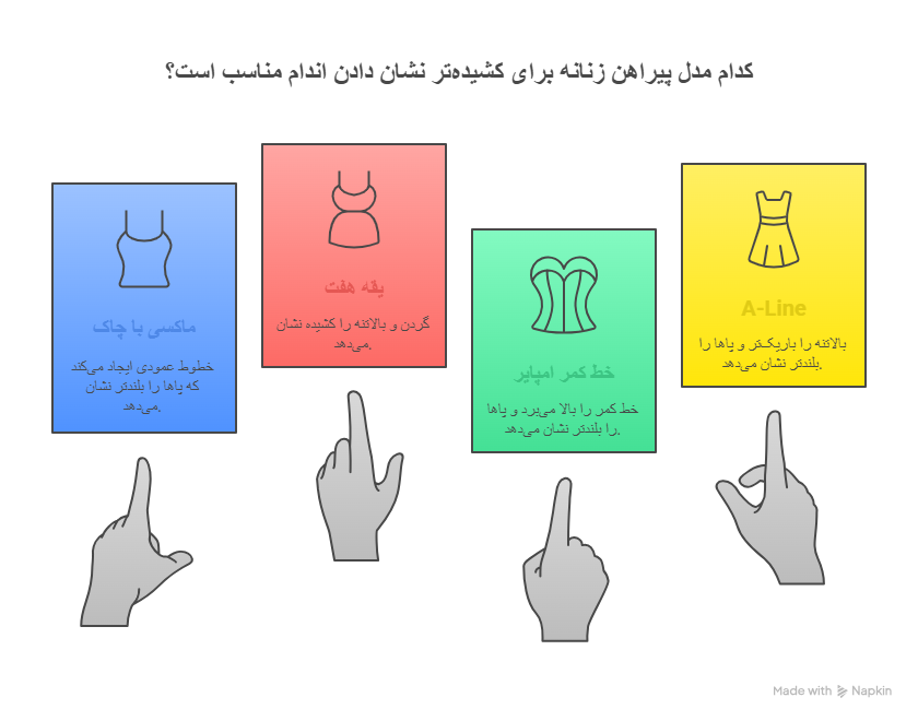 | مدل پیراهن | تاثیر بر قد | توضیحات کلیدی |