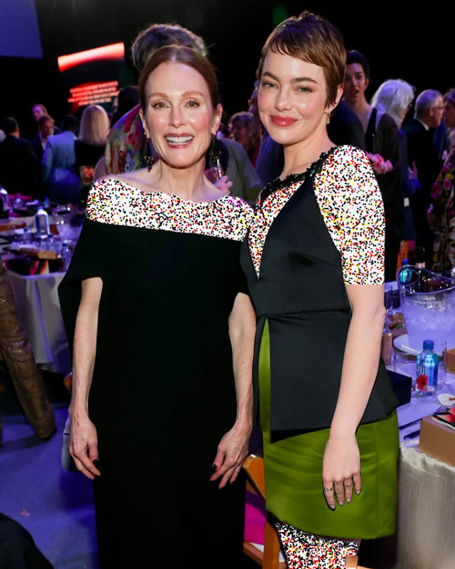 این بازیگر ۳۶ ساله، دامن کوتاه و سبزرنگ خود را با نیم تنه مشکی یقهباز و بدون آستین با کمر تنگ از برند “امیلیا ویکستد” همراه کرده بود که حال و هوای دهه ۱۹۷۰ را تداعی میکرد. او ظاهر شیک خود را با یک جفت کفش پاشنهدار مشکی نوکتیز که با بندی ظریف دور مچ پا بسته میشد، تکمیل کرد. اما استون به همراه همسرش، دیو مککری در این مراسم حضور یافت تا از فیلم دلهرهآور «درخشش را دیدم» حمایت کند؛ فیلمی که این زوج تهیهکننده آن هستند و در پنج بخش نامزد دریافت جایزه شد.