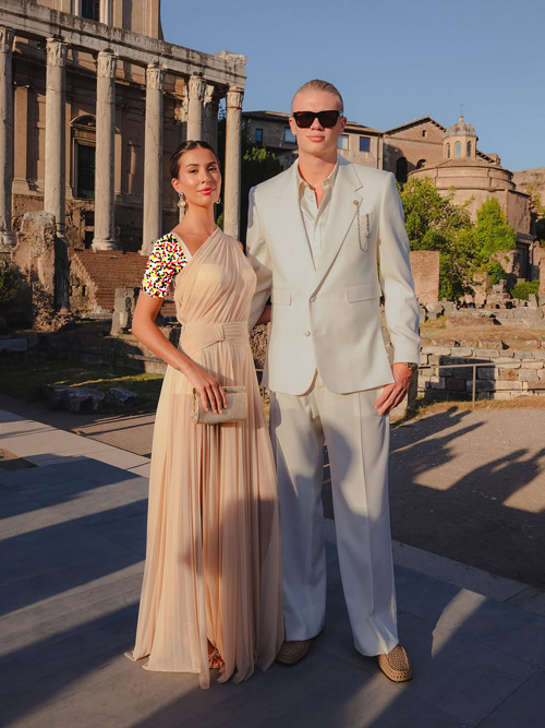 ارلینگ هالند، مهاجم سرشناس منچسترسیتی، اخیرا با حضور در فشنشوی برند «دولچه و گابانا» در شهر رم، همراه با پارتنرش و البته همکاری با برندهای لوکس، یکی از جدیدترین چهرههاییست که وارد قلمروی مد شده است. ظاهر متفاوت و جذاب او با موهای بلوند و اندام ورزیده، در کنار پوششهایی خاص و گاه عجیب، باعث شده این ورزشکار توجه رسانههای مد را نیز به خود جلب کند.