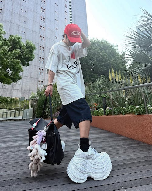 «بالنسیاگا» با الهام از استایلهای خیابانی و تمایل به برجستهسازی جزئیات، موفق شده کفشهایی طراحی کند که نه تنها راحتی، بلکه بیانیهای از سبک فردی و اعتمادبهنفس را منتقل میکنند. در یکی از جدیدترین ترکیبهای استایلی، این کتانیهای لژدار غولپیکر «بالنسیاگا» نقش کلیدی ایفا کردهاند. پسری با استایلی ساده اما جذاب، شامل یک تیشرت سفید باکسی، شلوارک مشکی، کلاه کپ قرمز، کیف دستی مشکی و جورابهای ساقدار مشکی، استایلی کاملاً مینیمال و مدرن خلق کرده و این تیپ با کفشهای «بالنسیاگا» به طرز چشمگیری کامل شده است. این کفشها به دلیل حجم زیاد و لژ بلندشان، به سادگی نگاهها را به خود جلب کرده و باعث شده استایل این پسر از سادگی به ترکیبی جسور و جذاب ارتقا پیدا کند.