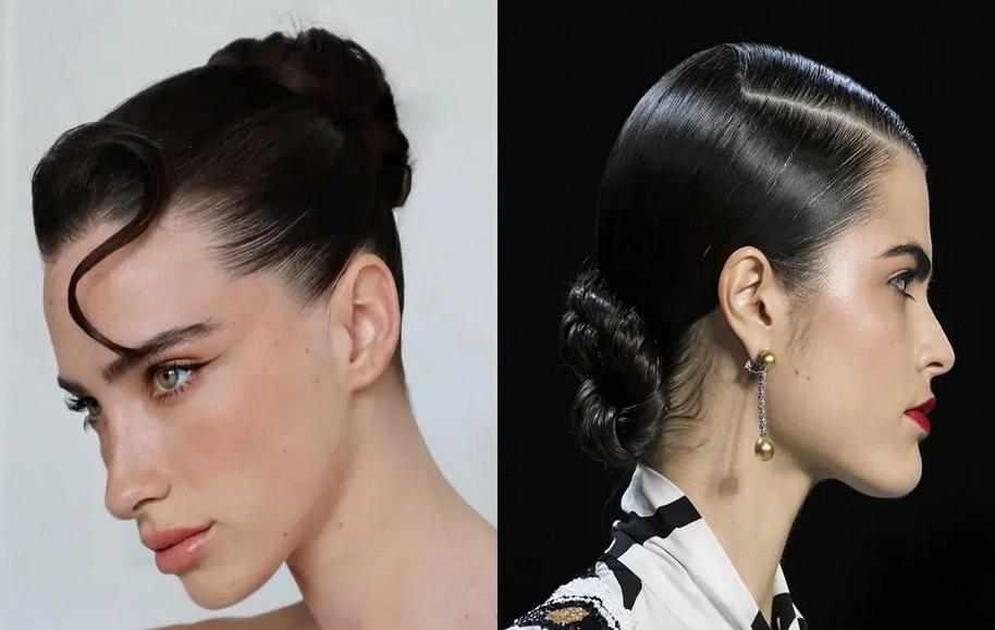 مدل مو خیس گوجهای (Wet Bun) یکی از تمیزترین و شیکترین گزینهها برای استایلهای روزمره و رسمی است. در این مدل، موها با ژل یا موس براق به عقب جمع و در قسمت پشت سر به شکل یک گوجه بسته میشوند. این مدل بهشدت مرتب، حرفهای و مینیمال است و صورت را کاملا باز و جذاب نشان میدهد. اگر موهای بلندی دارید که دائما چرب میشوند اما نمیخواهید آنها را هر روز بشویید باید مدل مو خیس گوجهای را حتما یاد بگیرید.