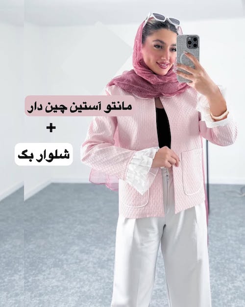 این ترکیب، یکی از انتخابهای جذاب برای عید است. مانتوهایی با آستینهای چیندار، حس لطافت و زنانه بودن را منتقل میکنند و شلوار بگ به استایل راحتی و آزادی میدهد. این تیپ معمولاً با رنگهای ملایم و پاستلی برای بهار هماهنگ میشود و استایلی آرام و شیک به شما میدهد.