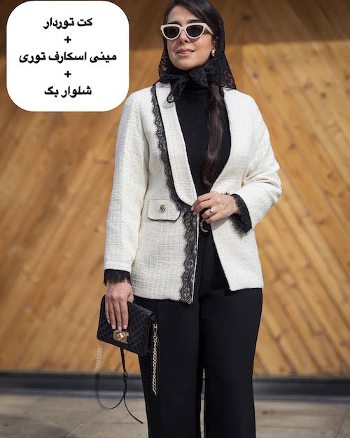 کت توردار، مینیاسکارف توری و شلوار بگ