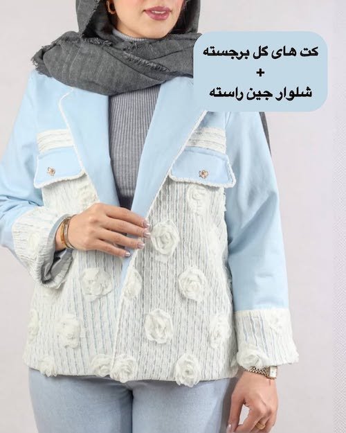 کتهای گلبرجسته یکی از ترندهای مهم این فصل هستند. ترکیب این کتها با شلوار جین راسته، استایلی کلاسیک و در عین حال خاص و بهاری ایجاد میکند که میتوان آن را به راحتی برای مهمانیها یا دید و بازدیدهای عید پوشید.