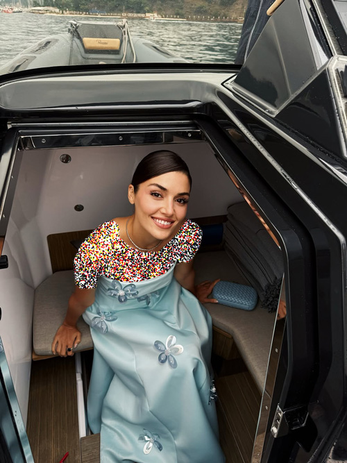 در اولین استایل، هانده ارچل با پیراهنی دکلته از طراحیهای «هاکان ییلدریم» و به رنگ آبی آسمانی ظاهر شد که طراحی آن با گلهای درشت تزئین شده بود؛ رنگ و فرم این لباس، جلوهای رمانتیک و رؤیایی به او بخشیده بود. این پیراهن که در ترکیب با هوای آزاد و پسزمینه دریایی کشتی، تصویری فوقالعاده دخترانه و لطیف خلق میکرد، در سفر دخترانهای که او به همراه دوستانش داشت، بسیار مورد توجه قرار گرفت. با موهای آزاد و آرایشی سبک، هانده این ظاهر را به یکی از چشمگیرترین و الهامبخشترین استایلهای تابستانی خود تبدیل کرد.