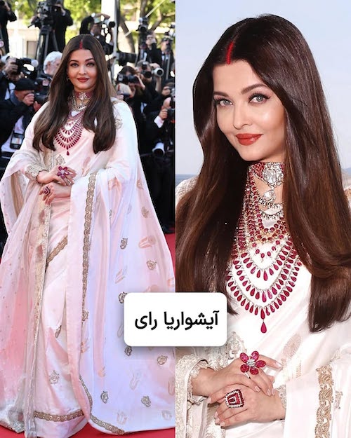 آیشواریا رای، با سابقهای طولانی در حضور در جشنواره کن، امسال نیز با لباسهایی خیرهکننده ظاهر شد. در اولین شب حضور بر روی فرش قرمز جشنواره کن ۲۰۲۵، آیشواریا برای اولین بار با لباس سنتی هندیها، یک ساری شیریرنگ از طراحیهای «مانیش مالهوترا» و با تزئینات طلایی را به تن کرد. او این ساری را با گردنبندی چند لایه با سنگهای درخشان یاقوت همراه کرده بود و بسیار خوش درخشید.