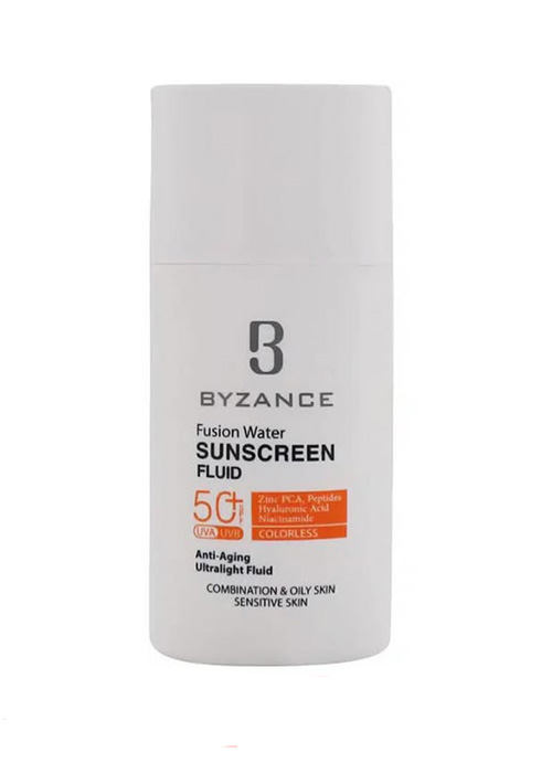 فلوئید ضد آفتاب فیوژن واتر «بیزانس»، با SPF 50 و به کمک فرمولاسیون پیشرفته و مواد مغذی خود، محافظت کاملی از پوست را در برابر اشعههای مضر خورشید به ارمغان آورده و در حفظ سلامت و جوانی پوست مصرفکننده موثر است. فلوئید فیوژن واتر «بیزانس»، با ویژگی های منحصر به فرد خود، به طور ویژه برای پوستهای چرب، مختلط و حساس طراحی شده است.