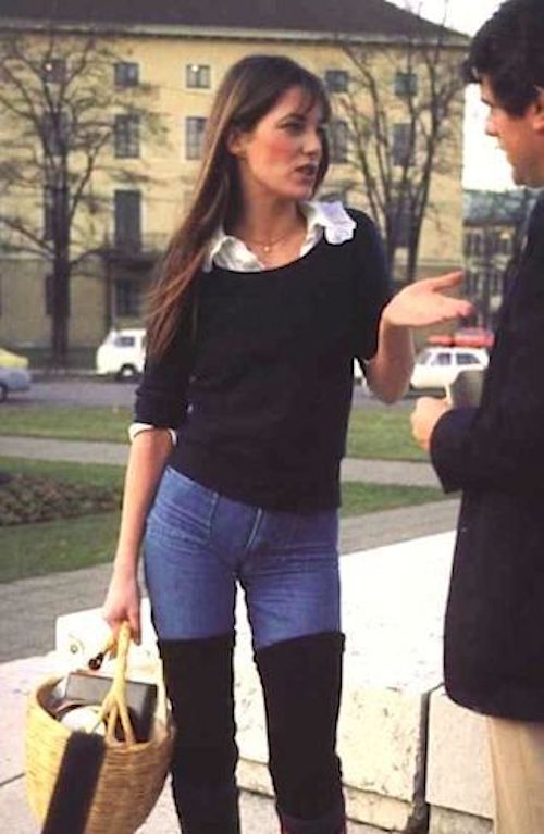 شلوارهای جین با برشهای آزاد و دمپا گشاد، بخشی جدانشدنی از ظاهر جین بیرکین بودند. او این آیتم را معمولاً با بلوزهای نخی، تاپهای بندی یا پیراهنهای گشاد میپوشید. این استایل، بازتابی از روح آزاد، بیقید و آرام دههی ۷۰ بود که امروز نیز با اجرای دوباره در فشن خیابانی، بار دیگر محبوب شده است.