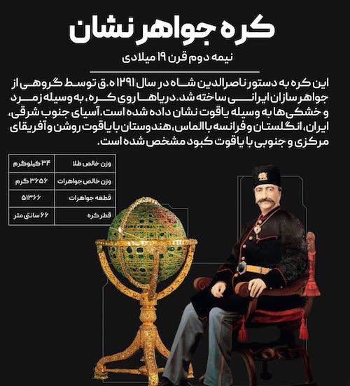 کره جواهرنشان یک کرهی جغرافیایی است که از طلا ساخته شده و با جواهرات گرانبها مانند الماس، زمرد، یاقوت و مروارید تزئین شده است. این کره در دورهی ناصرالدینشاه ساخته شد و نمادی از دانش، قدرت و ثروت ایران به شمار میرود.