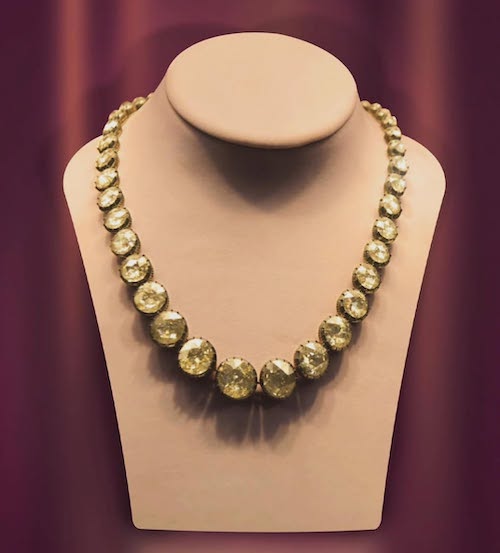 زنجیری زیبا و ظریف، ساختهشده از الماسهای درخشان که با فلز نقره به نواری از جنس طلا متصل شدهاند و برای آویختن ساعت جیبی به کار میرفت. این زنجیر توسط امین السلطان به ناصرالدین شاه هدیه شد و قفل آن نیز از جنس طلاست.