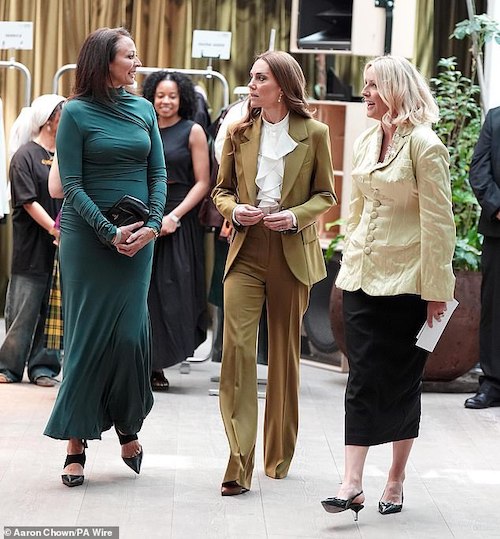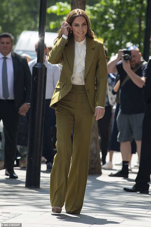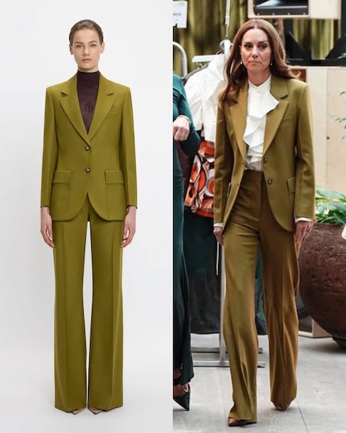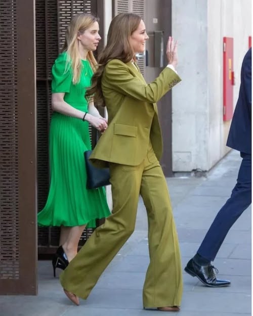کیت در این رویداد با کتوشلواری شیک از برند «ویکتوریا بکهام» ظاهر شد که انتخابی هوشمندانه و مدرن محسوب میشد و مورد توجه رسانهها و حاضران قرار گرفت. کیت با این کار صمیمیتش با ویکتوریا و همچنین حمایت خود از خانه های مد بریتانیایی را نشان داد. طراحی مینیمال، دوخت تمیز و رنگ زیتونی این لباس در عین سادگی، حس قدرت و وقار را منتقل میکرد.