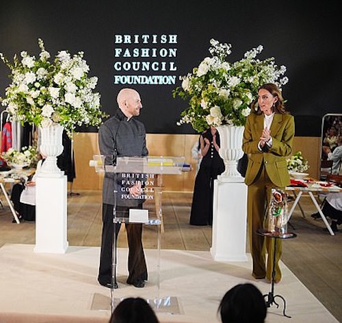 کاترین، شاهزاده خانم ولز و ملکهی آینده انگلستان، روز گذشته در مراسم اهدای جوایز بهترین طراح بریتانیا، به عنوان نمایندهی خانوادهی سلطنتی حاضر شد و جایزهی طراح لباس برتر انگلستان را به پاتریک مکداول اهدا کرد. پاتریک برای همکاری با برندهایی از جمله «بربری» و «شنل» شناخته میشود و جزو طراحانی است که برای استفاده از مواد قابل بازیافت و کمک به مد پایدار بسیار مورد تحسین قرار گرفتهاست.