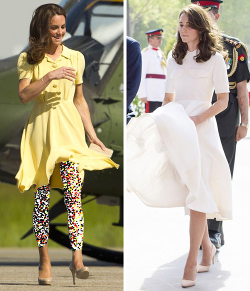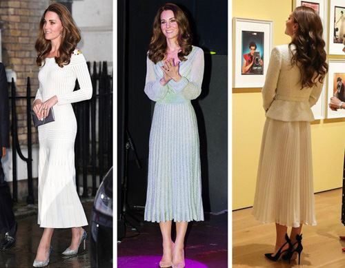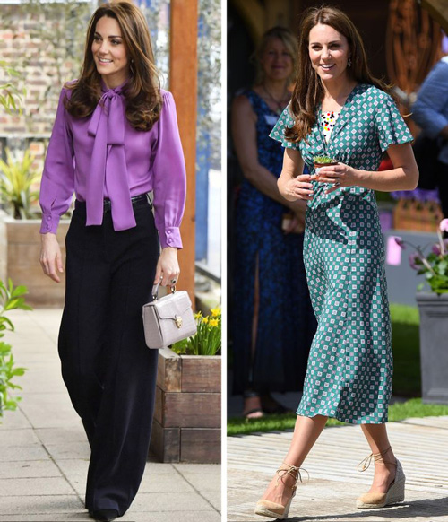 کاترین به عنوان پرنسس ولز و ملکهی آینده، استایلی متناسب با سنتهای سلطنتی دارد که بر ظرافت و کلاسیک بودن تأکید دارد. او گاهی عناصر مدرن مانند لباسهای بدون شانه یا دامنهای پلیسه را به استایل خود اضافه میکند، اما همواره در چارچوب وقار سلطنتی باقی میماند. در مقابل، مگان مارکل آزادی بیشتری در انتخابهای مد دارد و از ترندهای معاصر بیشتری استفاده میکند.