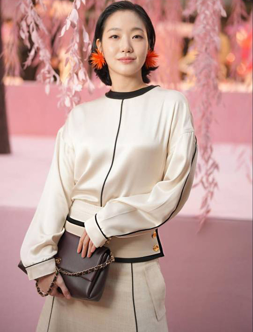 این ترکیب رنگی مینیمال، کاملاً با هویت شنل هماهنگ بود و وقار خاصی به استایل او میبخشید. در کنار لباس، گوشوارههای خاص با فرم گل نقش مهمی در تکمیل ظاهر کیم گو اون داشتند و جلوهای زنانه و هنری به استایلش اضافه کردند. حضور او در این شو بار دیگر جایگاهش را نهتنها در دنیای بازیگری، بلکه در عرصه مد و فشن نیز برجسته کرد.