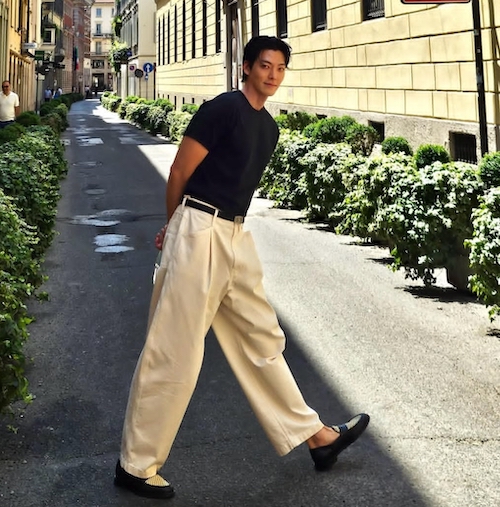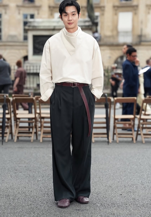 حضور این شلوارها روی فرش قرمزها، مراسمهای رسمی یا فرودگاهها نشان میدهد که بازیگران و خوانندگان مطرح کرهای به خوبی توانستهاند از این ترند برای ساختن تصویری شیک، متفاوت و جسورانه استفاده کنند. جذابیت شلوارهای گشاد در استایل مردان کرهای، نهتنها به فرم خاص و برشهای آزاد آن بازمیگردد، بلکه در نحوهی ترکیب و رنگآمیزی آنها نیز ریشه دارد. استفاده از رنگهای خنثی مانند کرم، خاکستری، مشکی یا حتی رنگهای جسورانهتری مثل آبی نفتی یا سبز زیتونی، در کنار اکسسوریهای دقیق مانند کفشهای رسمی براق، کتانیهای سفید یا کیفهای چرمی مینیمال، باعث شده تا این سبک به یک امضای بصری برای نسل جدید ستارگان بدل شود. آنها با مهارت، فرم سنتی مردانه را با گرایشهای مدرن تلفیق میکنند و استایلی میسازند که هم آرام و ساده است، هم تأثیرگذار و الهامبخش. در ادامه نگاهی داشتهایم به تعدادی از ستارگان مشهور کرهجنوبی با شلوارهای گشاد. با ما همراه باشید.