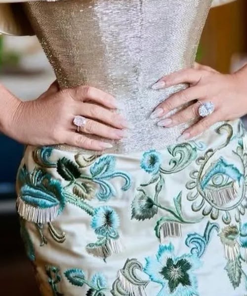 لورن سانچز، همسر جف بزوس، با دو حلقه خیرهکننده از نوع «سولیتر» توجه بسیاری را به خود جلب کرده است؛ یکی با الماس صورتی نادر و دیگری با الماس سفید چشمگیری که گفته میشود نسخهای ارتقاءیافته از حلقهی اولیه است.